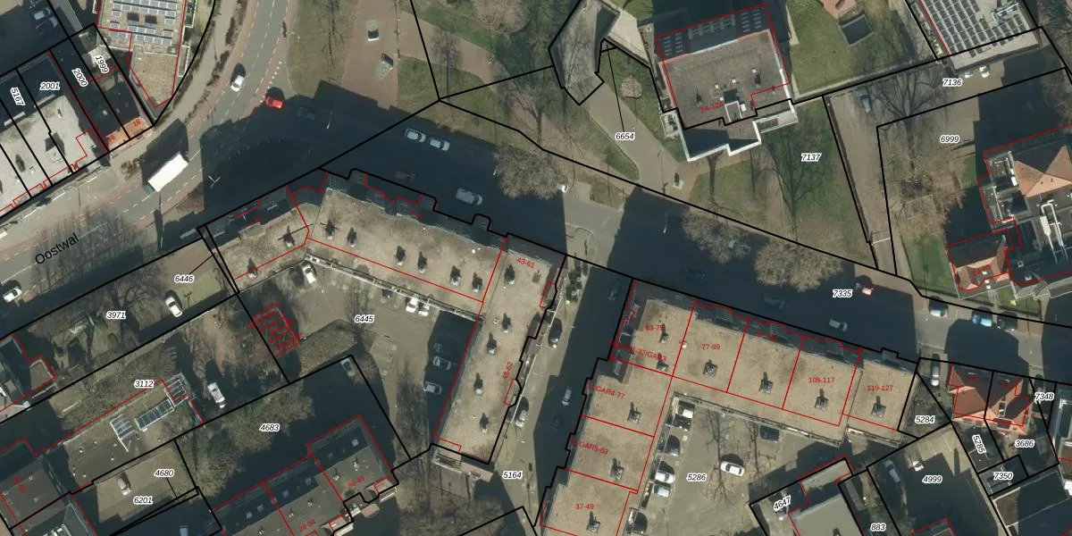 Bram van den Berghstraat 45 is gelegen op kadastraal perceel OSS00E6445. Deze kadastrale aanduiding is uniek en wordt gebruikt door het Kadaster om eigendomsrechten en andere zakelijke rechten vast te leggen. Het perceel maakt onderdeel uit van de kadastrale gemeente Oss.