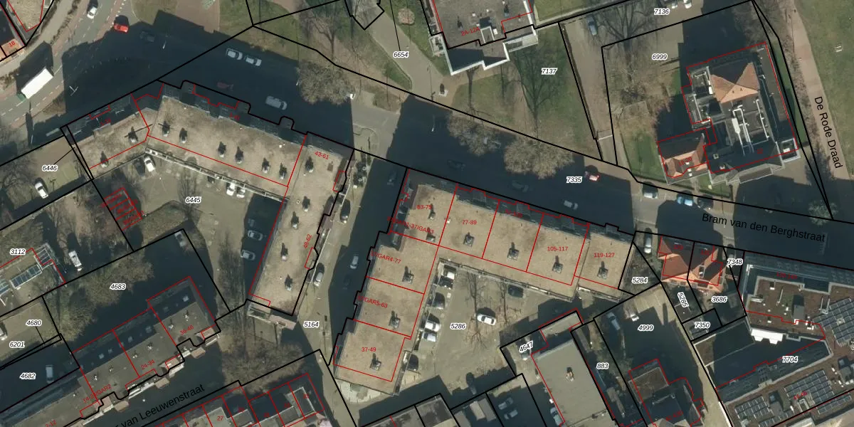 Het perceel waarop Bram van den Berghstraat 69 staat heeft een oppervlakte van 2495 m². Dit is een zeer groot perceel. De perceeloppervlakte wordt geregistreerd door het Kadaster. Gedetailleerde informatie over de maten van dit perceel kunt u vinden in het rapport Kadastrale kaart met maatvoering van Bram van den Berghstraat 69.