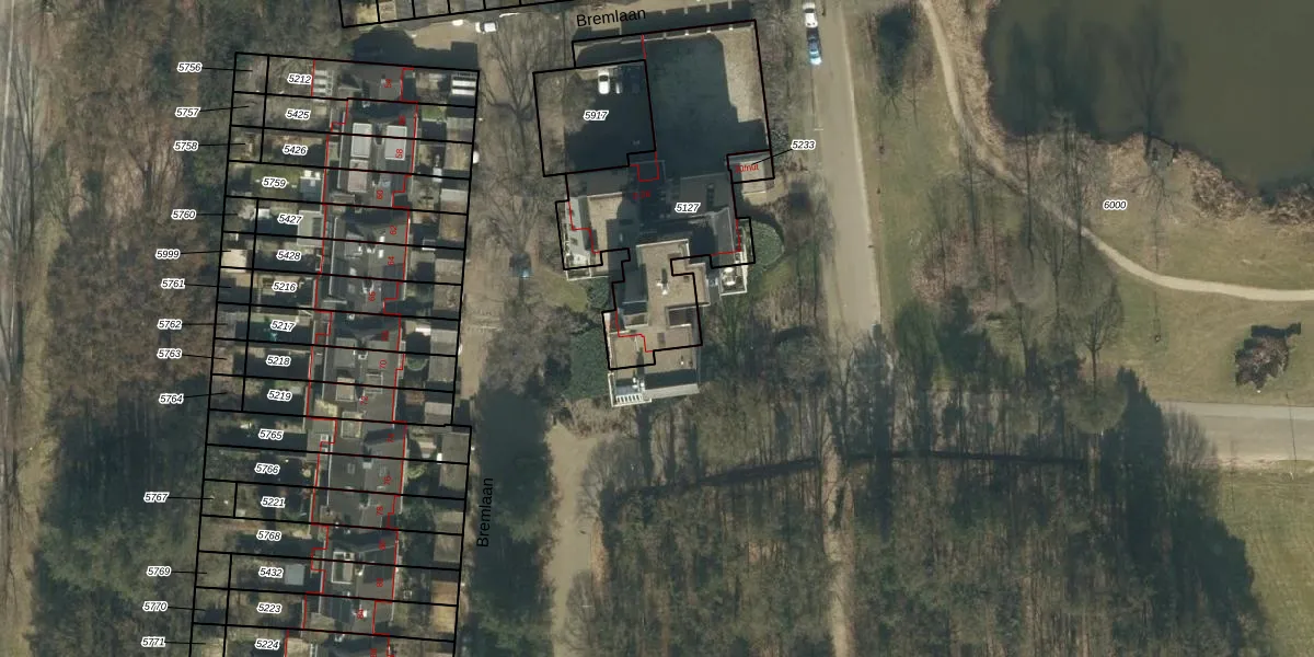 Het perceel waarop Bremlaan 10 staat heeft een oppervlakte van 974 m². Dit is een groot perceel. De perceeloppervlakte wordt geregistreerd door het Kadaster. Gedetailleerde informatie over de maten van dit perceel kunt u vinden in het rapport Kadastrale kaart met maatvoering van Bremlaan 10.