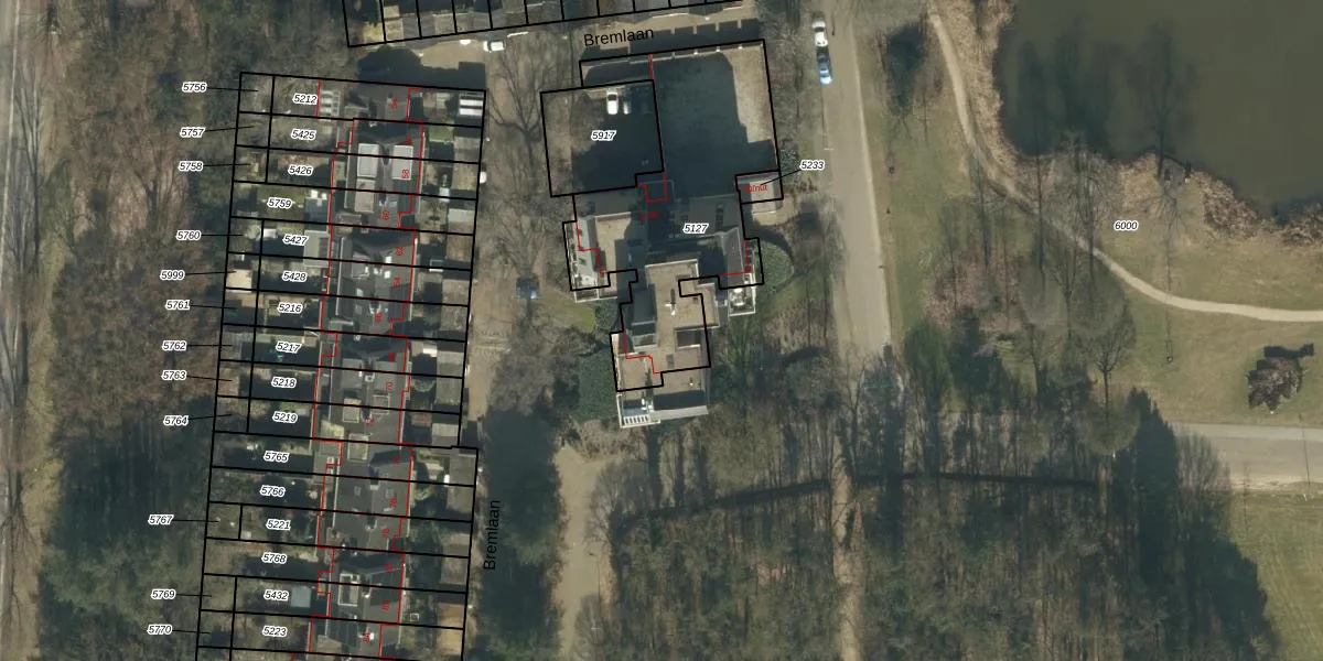 Het perceel waarop Bremlaan 16 staat heeft een oppervlakte van 974 m². Dit is een groot perceel. De perceeloppervlakte wordt geregistreerd door het Kadaster. Gedetailleerde informatie over de maten van dit perceel kunt u vinden in het rapport Kadastrale kaart met maatvoering van Bremlaan 16.