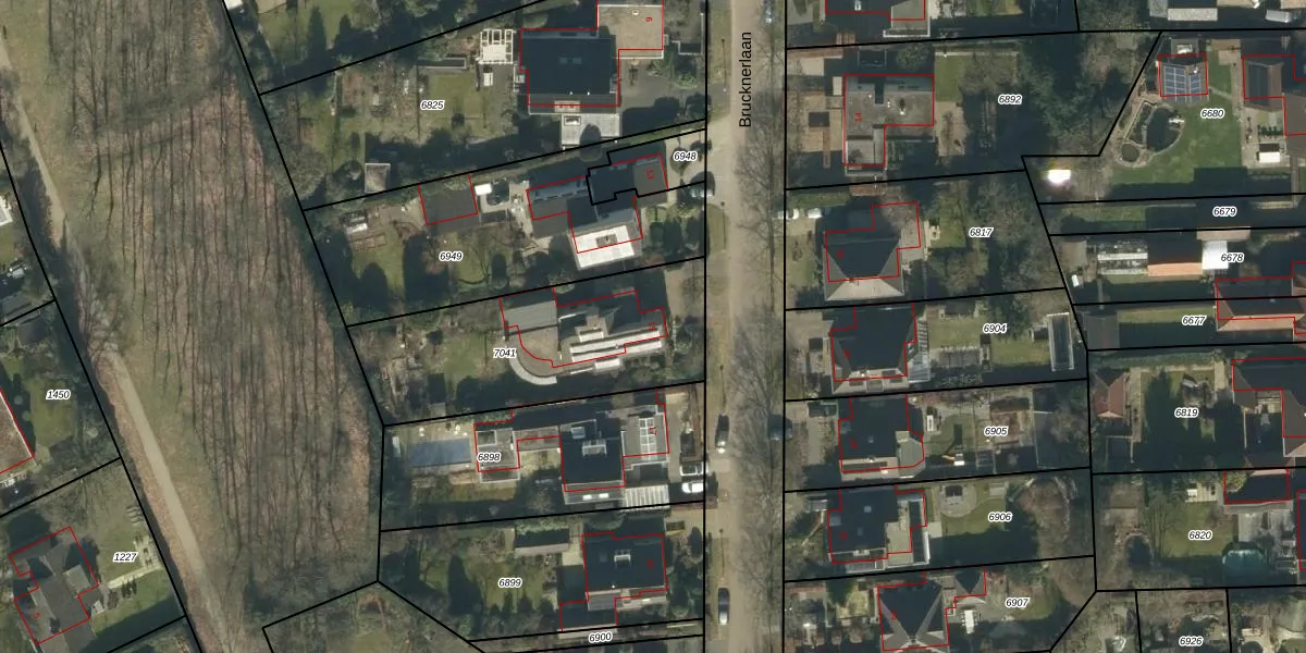 Brucknerlaan 15 is gelegen op kadastraal perceel OSS00C7041. Deze kadastrale aanduiding is uniek en wordt gebruikt door het Kadaster om eigendomsrechten en andere zakelijke rechten vast te leggen. Het perceel maakt onderdeel uit van de kadastrale gemeente Oss.