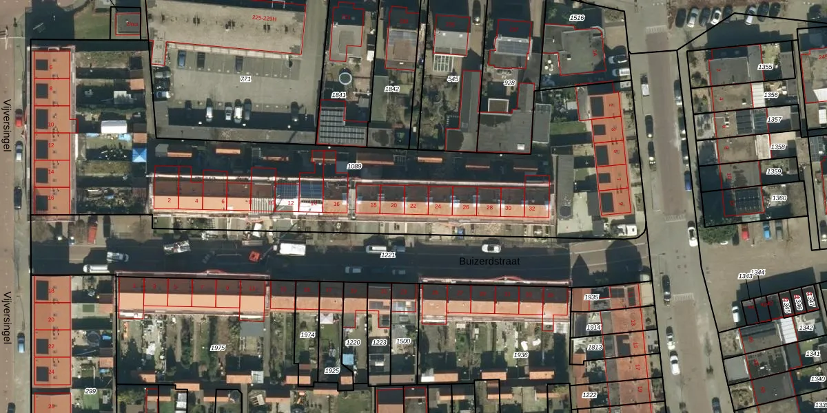 Buizerdstraat 22 is gelegen op kadastraal perceel OSS00G1089. Deze kadastrale aanduiding is uniek en wordt gebruikt door het Kadaster om eigendomsrechten en andere zakelijke rechten vast te leggen. Het perceel maakt onderdeel uit van de kadastrale gemeente Oss.