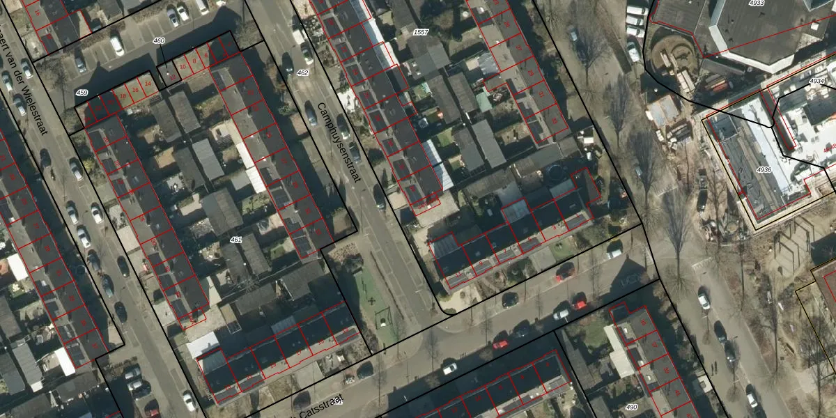 Het perceel waarop Camphuysenstraat 34-GAR1 staat heeft een oppervlakte van 6872 m². Dit is een zeer groot perceel. De perceeloppervlakte wordt geregistreerd door het Kadaster. Gedetailleerde informatie over de maten van dit perceel kunt u vinden in het rapport Kadastrale kaart met maatvoering van Camphuysenstraat 34-GAR1.