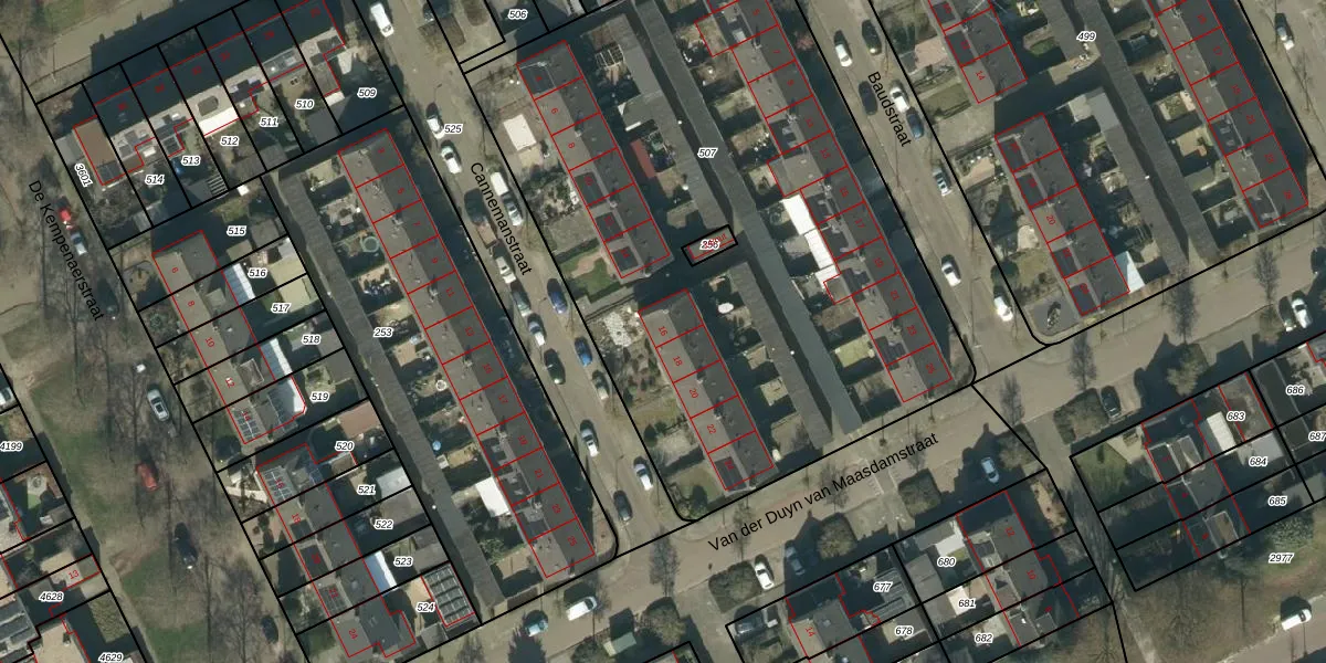 Cannemanstraat 16 is gelegen op kadastraal perceel OSS00L507. Deze kadastrale aanduiding is uniek en wordt gebruikt door het Kadaster om eigendomsrechten en andere zakelijke rechten vast te leggen. Het perceel maakt onderdeel uit van de kadastrale gemeente Oss.