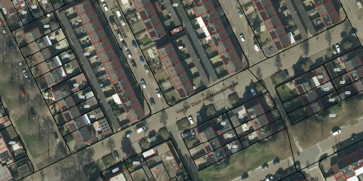 Het perceel waarop Cannemanstraat 24 staat heeft een oppervlakte van 3752 m². Dit is een zeer groot perceel. De perceeloppervlakte wordt geregistreerd door het Kadaster. Gedetailleerde informatie over de maten van dit perceel kunt u vinden in het rapport Kadastrale kaart met maatvoering van Cannemanstraat 24.