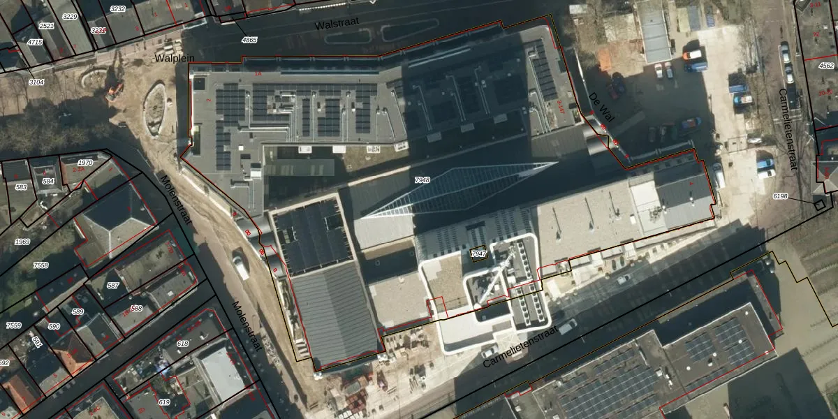 Het perceel waarop Carmelietenstraat 121 staat heeft een oppervlakte van 6211 m². Dit is een zeer groot perceel. De perceeloppervlakte wordt geregistreerd door het Kadaster. Gedetailleerde informatie over de maten van dit perceel kunt u vinden in het rapport Kadastrale kaart met maatvoering van Carmelietenstraat 121.