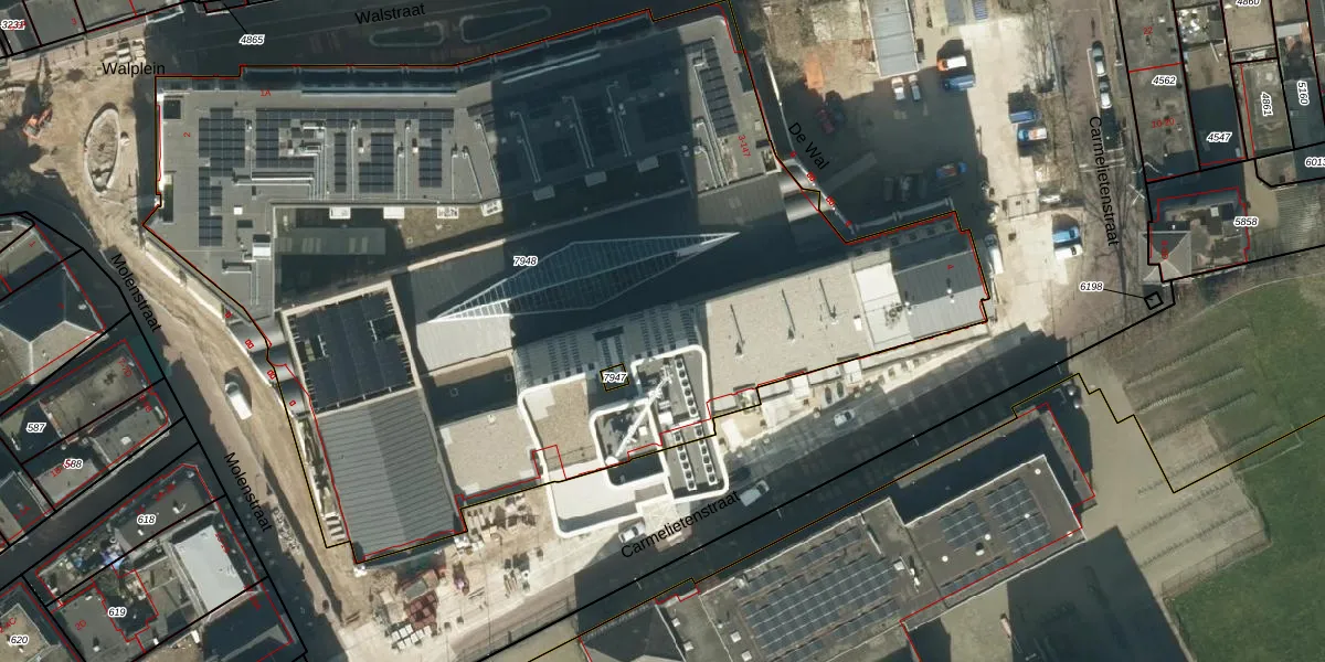 Het perceel waarop Carmelietenstraat 41 staat heeft een oppervlakte van 6211 m². Dit is een zeer groot perceel. De perceeloppervlakte wordt geregistreerd door het Kadaster. Gedetailleerde informatie over de maten van dit perceel kunt u vinden in het rapport Kadastrale kaart met maatvoering van Carmelietenstraat 41.