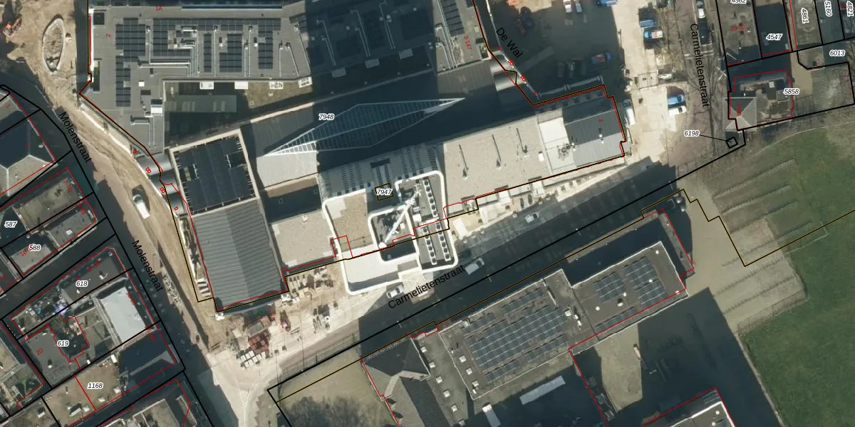 Het perceel waarop Carmelietenstraat 5 staat heeft een oppervlakte van 6211 m². Dit is een zeer groot perceel. De perceeloppervlakte wordt geregistreerd door het Kadaster. Gedetailleerde informatie over de maten van dit perceel kunt u vinden in het rapport Kadastrale kaart met maatvoering van Carmelietenstraat 5.