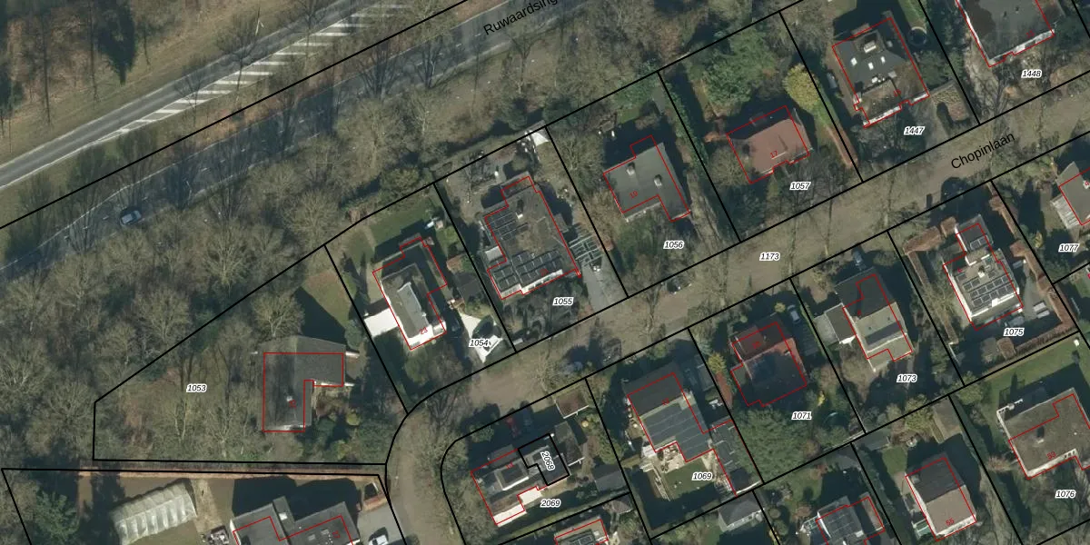 Het perceel waarop Chopinlaan 21 staat heeft een oppervlakte van 802 m². Dit is een groot perceel. De perceeloppervlakte wordt geregistreerd door het Kadaster. Gedetailleerde informatie over de maten van dit perceel kunt u vinden in het rapport Kadastrale kaart met maatvoering van Chopinlaan 21.