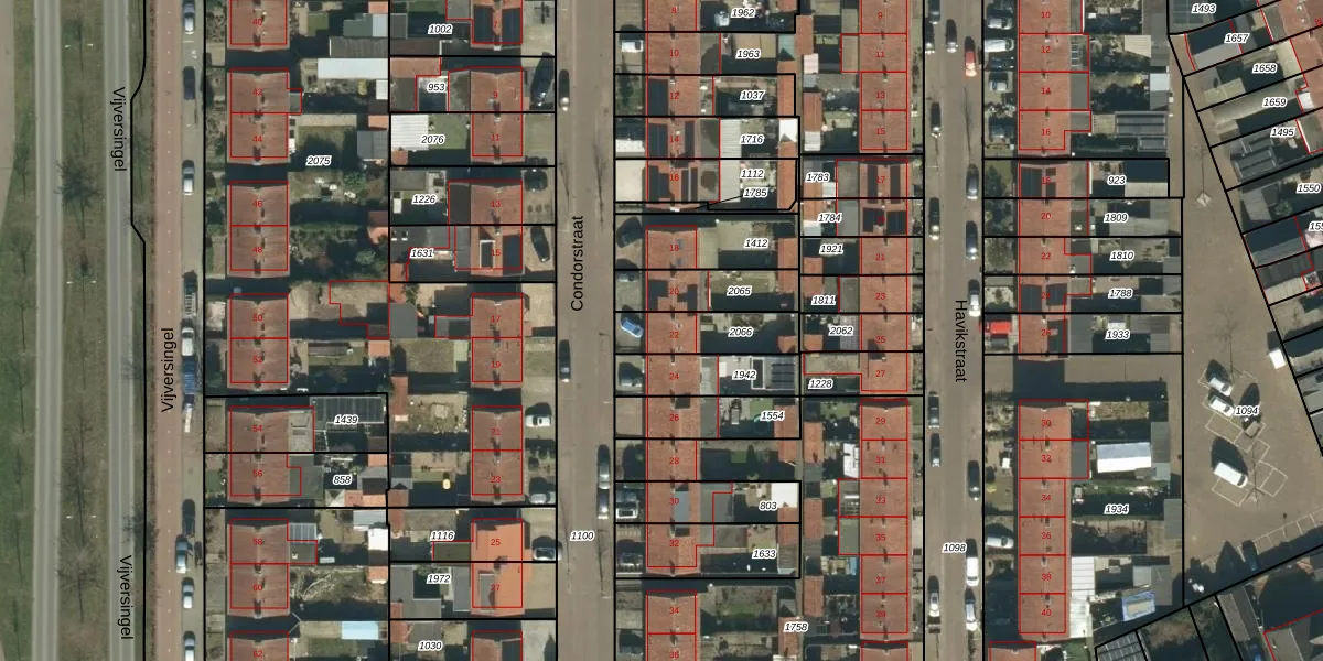 Het perceel waarop Condorstraat 22 staat heeft een oppervlakte van 179 m². Dit is een middelgroot perceel. De perceeloppervlakte wordt geregistreerd door het Kadaster. Gedetailleerde informatie over de maten van dit perceel kunt u vinden in het rapport Kadastrale kaart met maatvoering van Condorstraat 22.