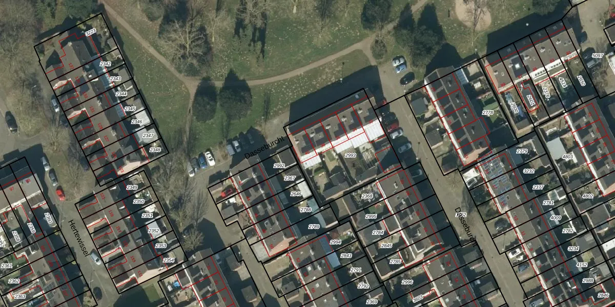 Het perceel waarop Dasseburcht 40 staat heeft een oppervlakte van 849 m². Dit is een groot perceel. De perceeloppervlakte wordt geregistreerd door het Kadaster. Gedetailleerde informatie over de maten van dit perceel kunt u vinden in het rapport Kadastrale kaart met maatvoering van Dasseburcht 40.