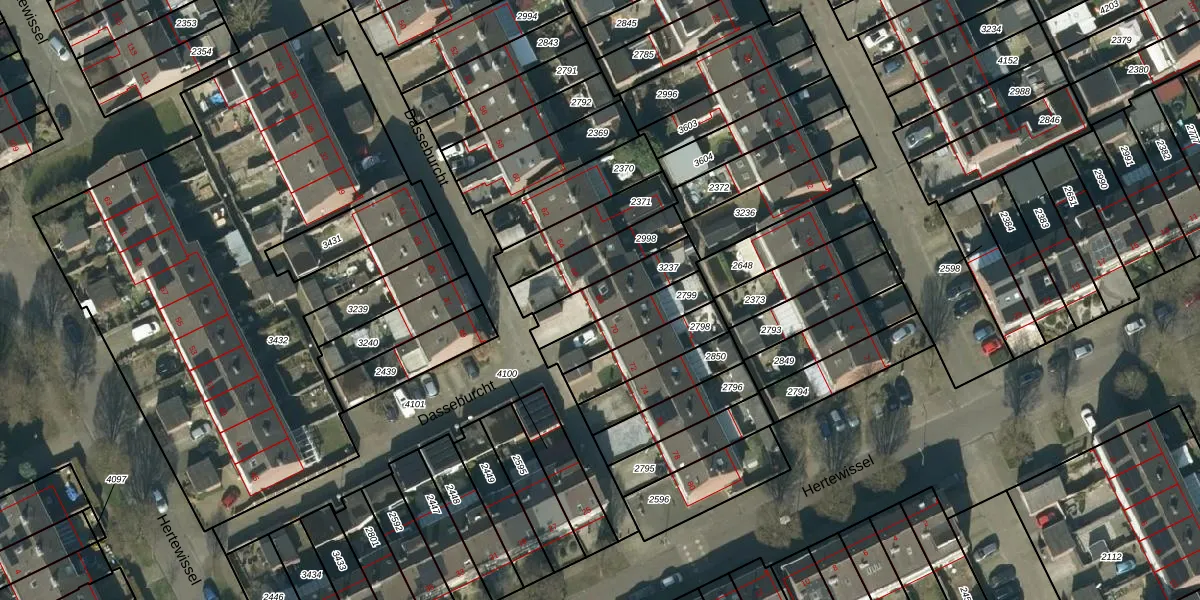 Gebruik de zoekbalk of klik op een perceel voor informatie over de adressen binnen dit perceel.