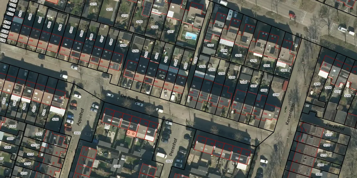 Het perceel waarop De Bongerd 134 staat heeft een oppervlakte van 183 m². Dit is een middelgroot perceel. De perceeloppervlakte wordt geregistreerd door het Kadaster. Gedetailleerde informatie over de maten van dit perceel kunt u vinden in het rapport Kadastrale kaart met maatvoering van De Bongerd 134.