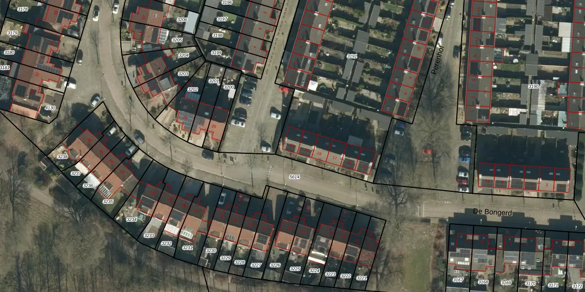 Het perceel waarop De Bongerd 23 staat heeft een oppervlakte van 3151 m². Dit is een zeer groot perceel. De perceeloppervlakte wordt geregistreerd door het Kadaster. Gedetailleerde informatie over de maten van dit perceel kunt u vinden in het rapport Kadastrale kaart met maatvoering van De Bongerd 23.