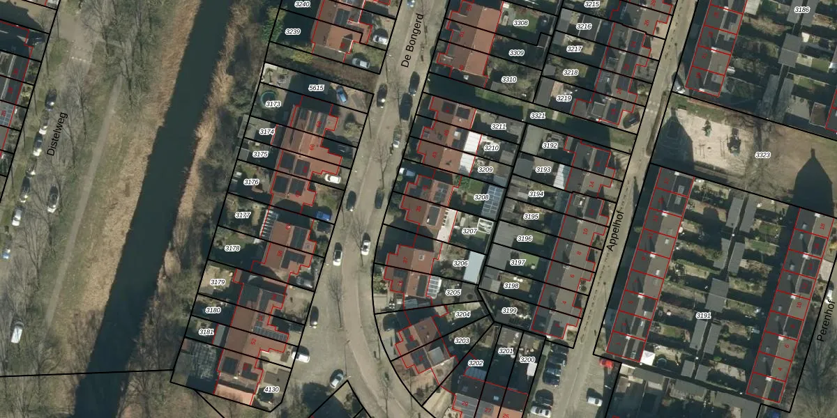 Gebruik de zoekbalk of klik op een perceel voor informatie over de adressen binnen dit perceel.