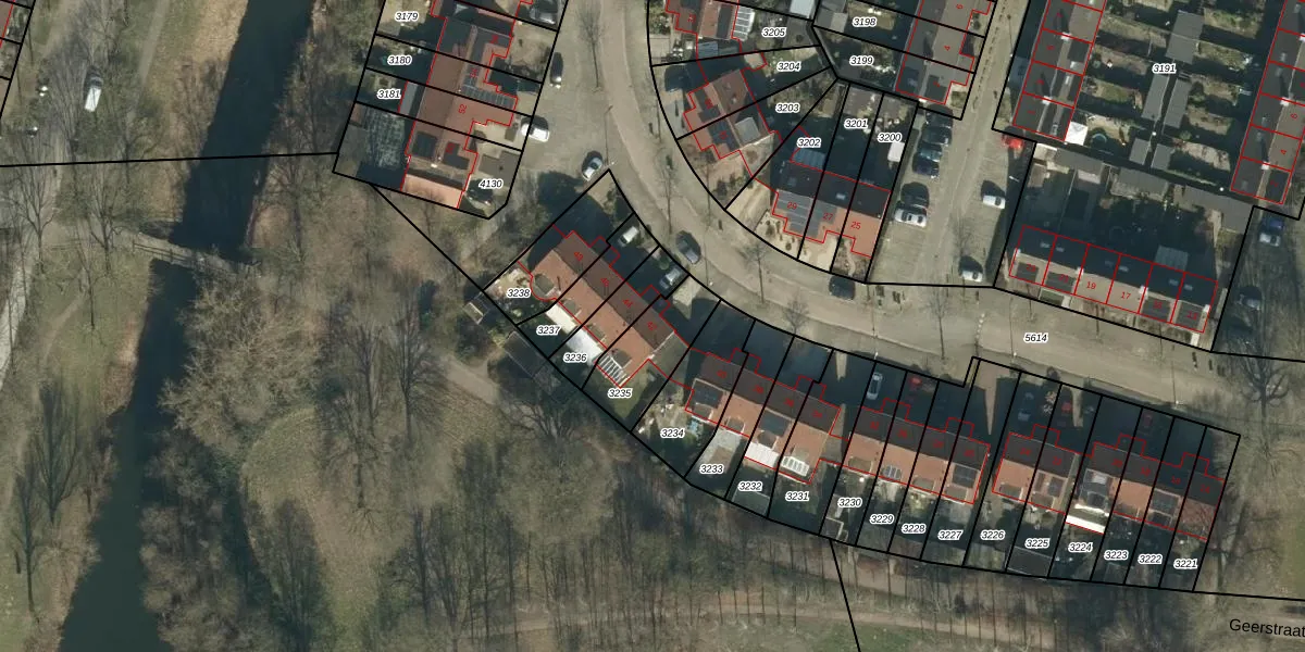 Gebruik de zoekbalk of klik op een perceel voor informatie over de adressen binnen dit perceel.
