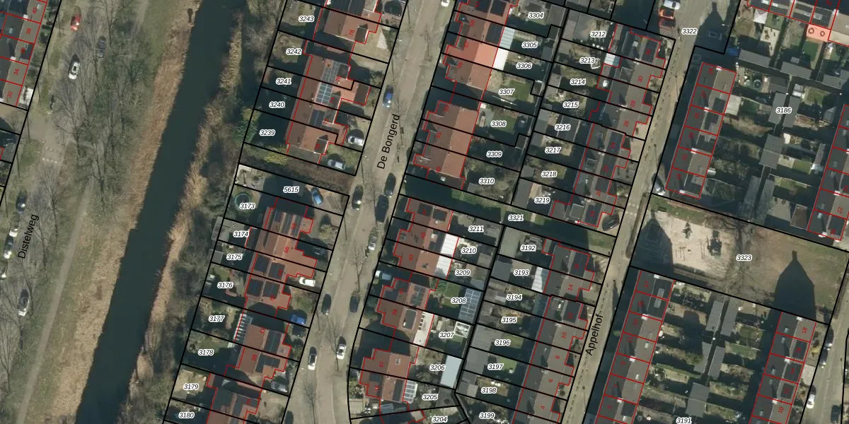 Gebruik de zoekbalk of klik op een perceel voor informatie over de adressen binnen dit perceel.