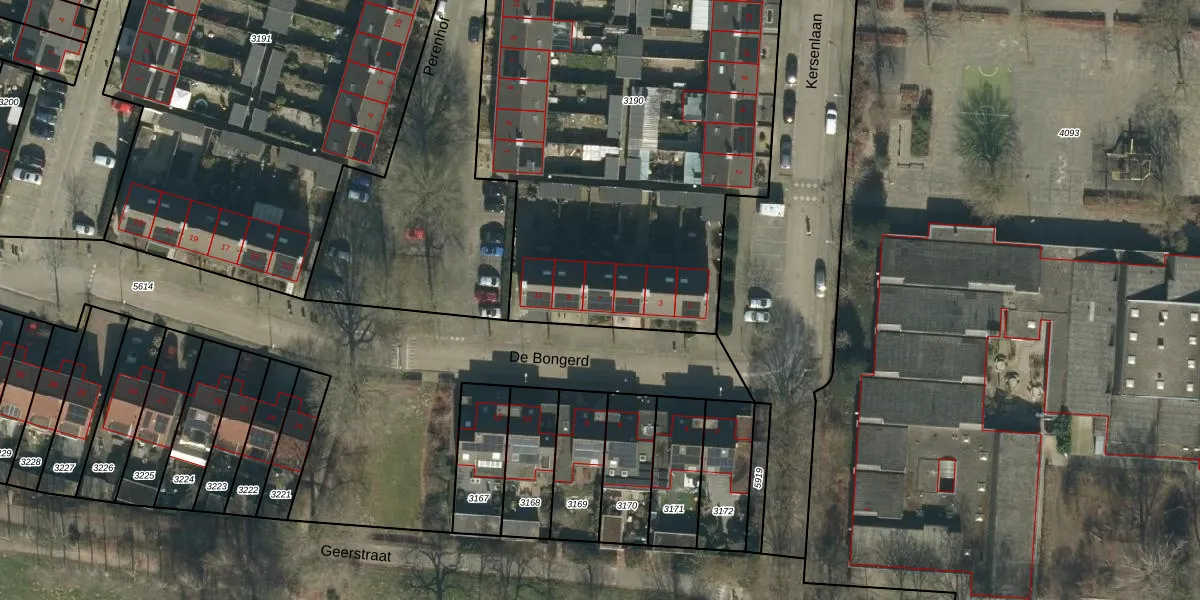 Het perceel waarop De Bongerd 7 staat heeft een oppervlakte van 3163 m². Dit is een zeer groot perceel. De perceeloppervlakte wordt geregistreerd door het Kadaster. Gedetailleerde informatie over de maten van dit perceel kunt u vinden in het rapport Kadastrale kaart met maatvoering van De Bongerd 7.