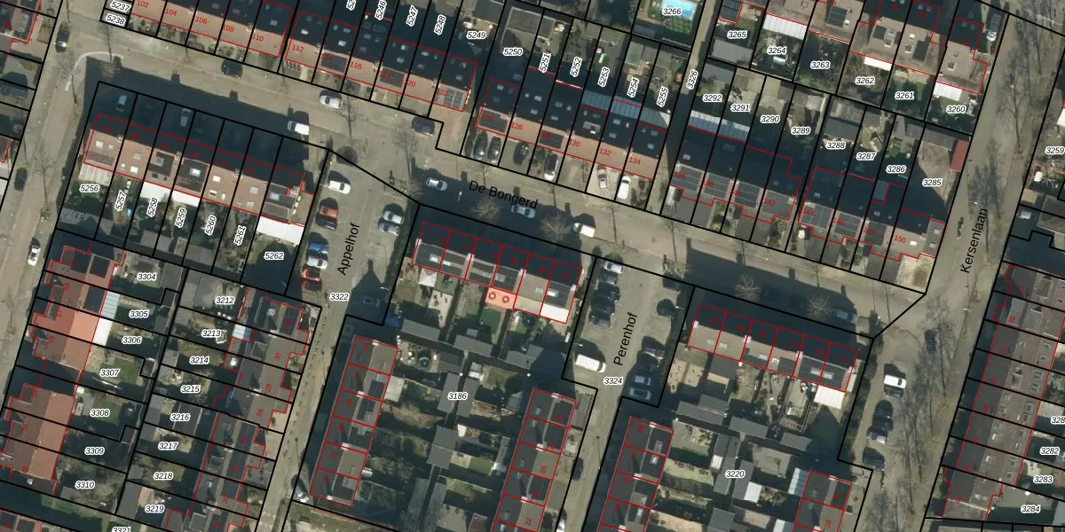 Het perceel waarop De Bongerd 83 staat heeft een oppervlakte van 2623 m². Dit is een zeer groot perceel. De perceeloppervlakte wordt geregistreerd door het Kadaster. Gedetailleerde informatie over de maten van dit perceel kunt u vinden in het rapport Kadastrale kaart met maatvoering van De Bongerd 83.