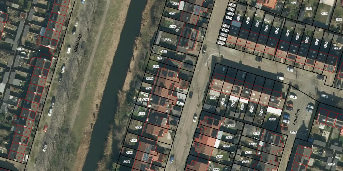 Gebruik de zoekbalk of klik op een perceel voor informatie over de adressen binnen dit perceel.