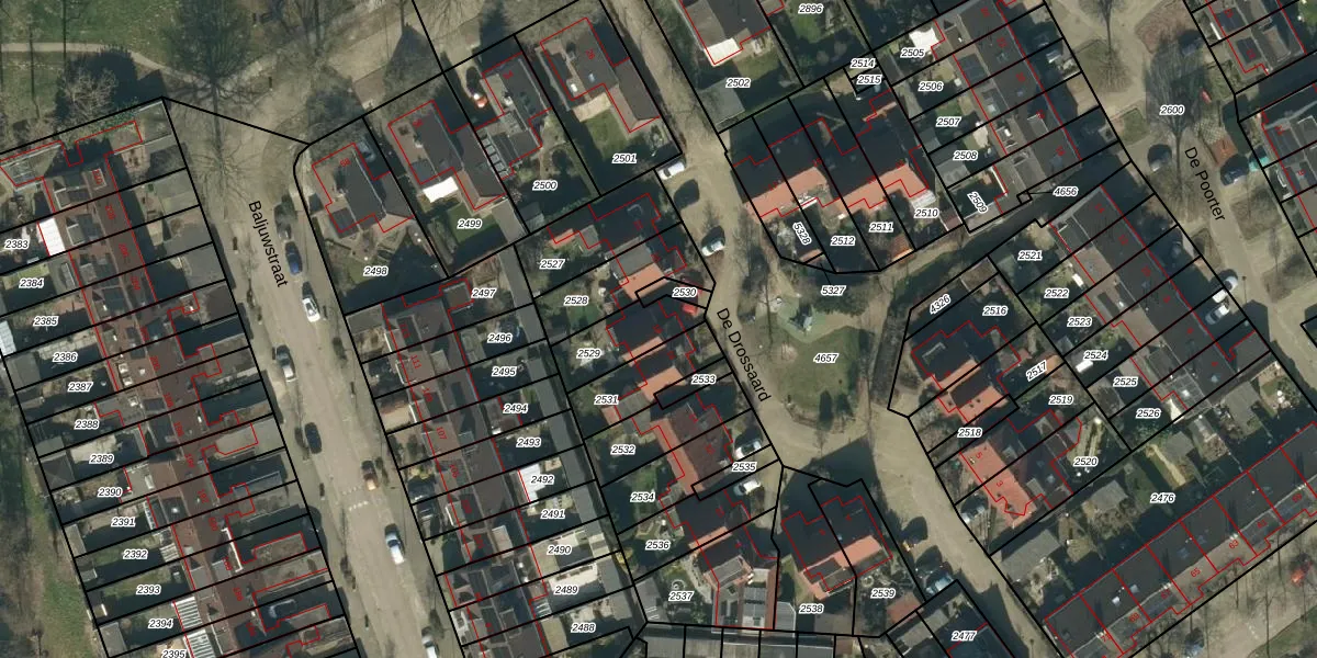 Het perceel waarop De Drossaard 18 staat heeft een oppervlakte van 163 m². Dit is een middelgroot perceel. De perceeloppervlakte wordt geregistreerd door het Kadaster. Gedetailleerde informatie over de maten van dit perceel kunt u vinden in het rapport Kadastrale kaart met maatvoering van De Drossaard 18.