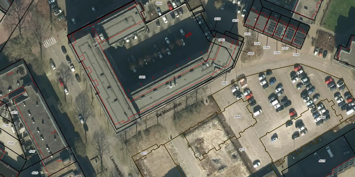 De Maasvallei 103 is gelegen op kadastraal perceel OSS00E6881. Deze kadastrale aanduiding is uniek en wordt gebruikt door het Kadaster om eigendomsrechten en andere zakelijke rechten vast te leggen. Het perceel maakt onderdeel uit van de kadastrale gemeente Oss.