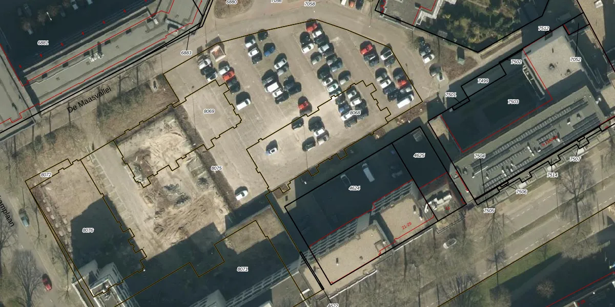 Het perceel waarop De Maasvallei 108 staat heeft een oppervlakte van 746 m². Dit is een groot perceel. De perceeloppervlakte wordt geregistreerd door het Kadaster. Gedetailleerde informatie over de maten van dit perceel kunt u vinden in het rapport Kadastrale kaart met maatvoering van De Maasvallei 108.