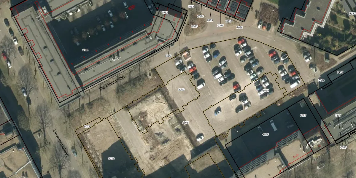 Het perceel waarop De Maasvallei 184 staat heeft een oppervlakte van 656 m². Dit is een groot perceel. De perceeloppervlakte wordt geregistreerd door het Kadaster. Gedetailleerde informatie over de maten van dit perceel kunt u vinden in het rapport Kadastrale kaart met maatvoering van De Maasvallei 184.