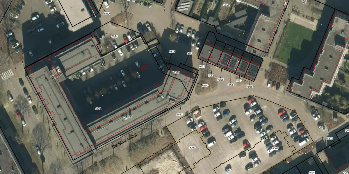 Het perceel waarop De Maasvallei 55 staat heeft een oppervlakte van 3844 m². Dit is een zeer groot perceel. De perceeloppervlakte wordt geregistreerd door het Kadaster. Gedetailleerde informatie over de maten van dit perceel kunt u vinden in het rapport Kadastrale kaart met maatvoering van De Maasvallei 55.