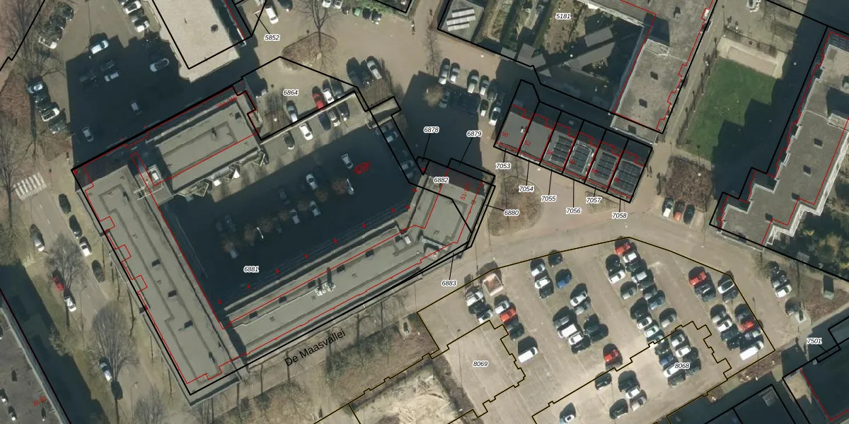 De Maasvallei 71 is gelegen op kadastraal perceel OSS00E6881. Deze kadastrale aanduiding is uniek en wordt gebruikt door het Kadaster om eigendomsrechten en andere zakelijke rechten vast te leggen. Het perceel maakt onderdeel uit van de kadastrale gemeente Oss.