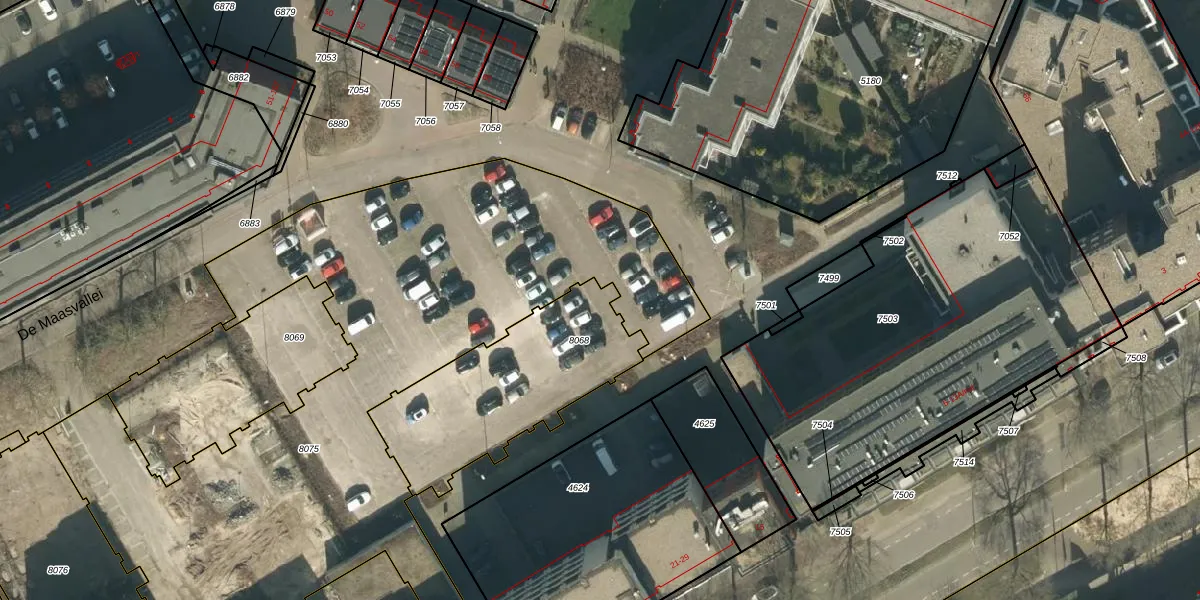 Het perceel waarop De Maasvallei 74 staat heeft een oppervlakte van 746 m². Dit is een groot perceel. De perceeloppervlakte wordt geregistreerd door het Kadaster. Gedetailleerde informatie over de maten van dit perceel kunt u vinden in het rapport Kadastrale kaart met maatvoering van De Maasvallei 74.