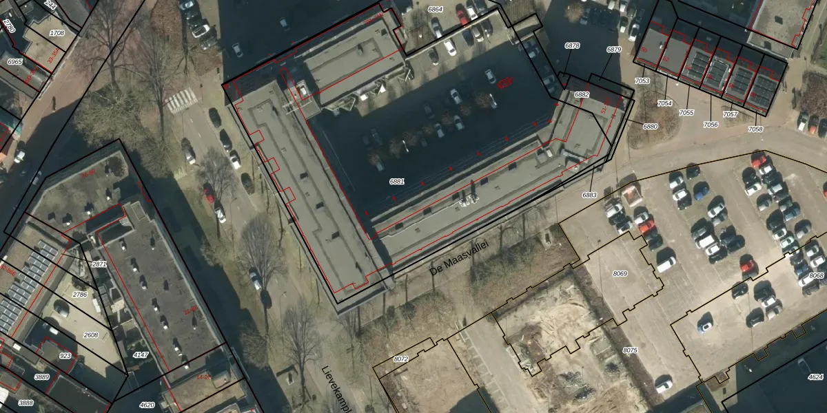 De Maasvallei 81 is gelegen op kadastraal perceel OSS00E6881. Deze kadastrale aanduiding is uniek en wordt gebruikt door het Kadaster om eigendomsrechten en andere zakelijke rechten vast te leggen. Het perceel maakt onderdeel uit van de kadastrale gemeente Oss.