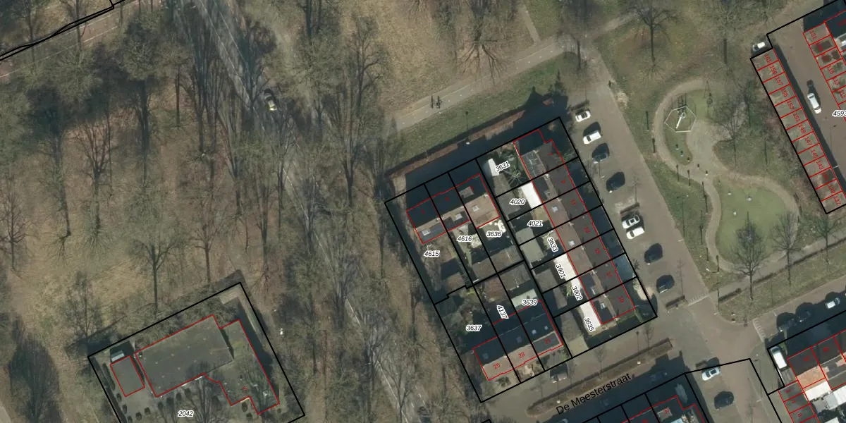 De Meesterstraat 1 is gelegen op kadastraal perceel OSS00L4615. Deze kadastrale aanduiding is uniek en wordt gebruikt door het Kadaster om eigendomsrechten en andere zakelijke rechten vast te leggen. Het perceel maakt onderdeel uit van de kadastrale gemeente Oss.