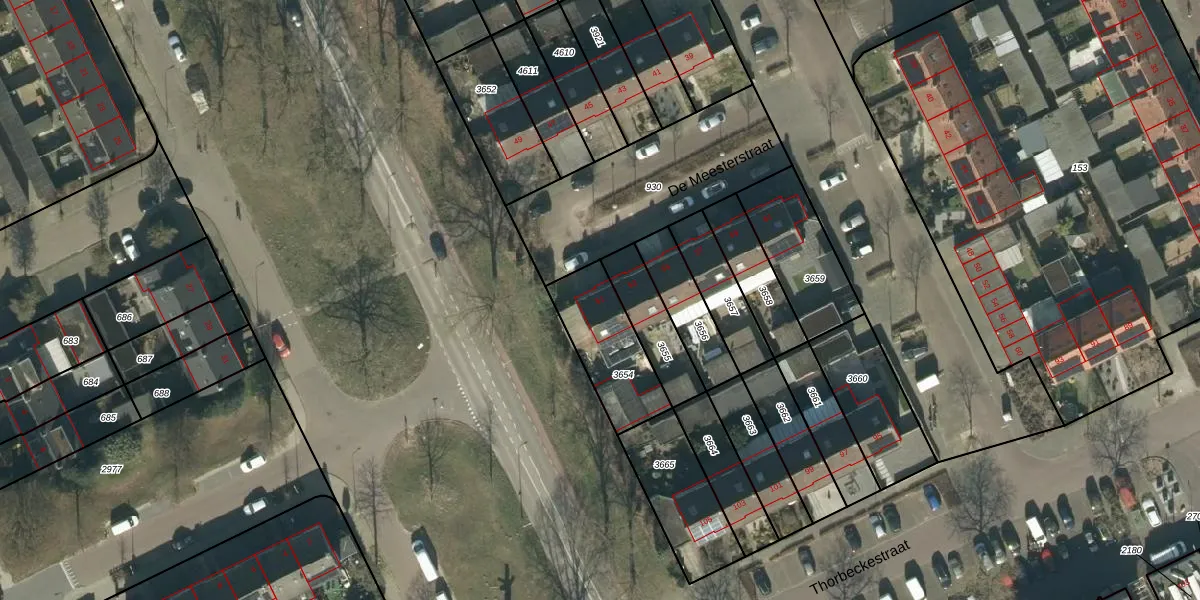 De Meesterstraat 51 is gelegen op kadastraal perceel OSS00L3654. Deze kadastrale aanduiding is uniek en wordt gebruikt door het Kadaster om eigendomsrechten en andere zakelijke rechten vast te leggen. Het perceel maakt onderdeel uit van de kadastrale gemeente Oss.