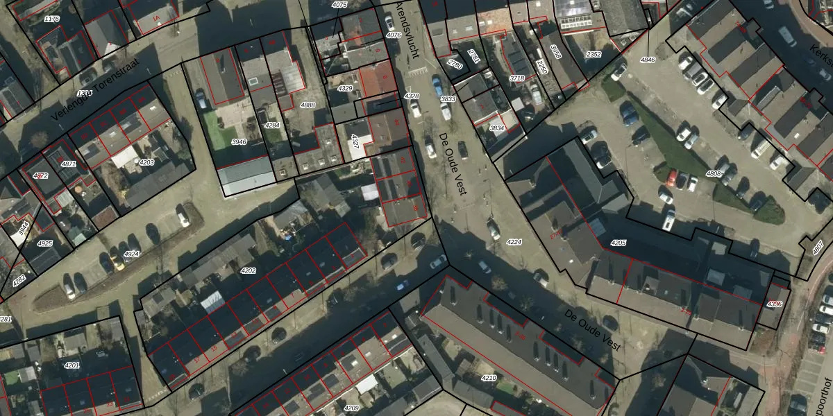 Het perceel waarop De Oude Vest 38 staat heeft een oppervlakte van 1743 m². Dit is een zeer groot perceel. De perceeloppervlakte wordt geregistreerd door het Kadaster. Gedetailleerde informatie over de maten van dit perceel kunt u vinden in het rapport Kadastrale kaart met maatvoering van De Oude Vest 38.