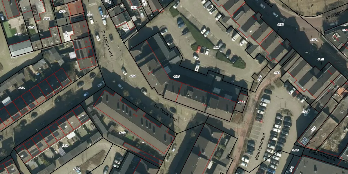De Oude Vest 41 is gelegen op kadastraal perceel OSS00A4205. Deze kadastrale aanduiding is uniek en wordt gebruikt door het Kadaster om eigendomsrechten en andere zakelijke rechten vast te leggen. Het perceel maakt onderdeel uit van de kadastrale gemeente Oss.
