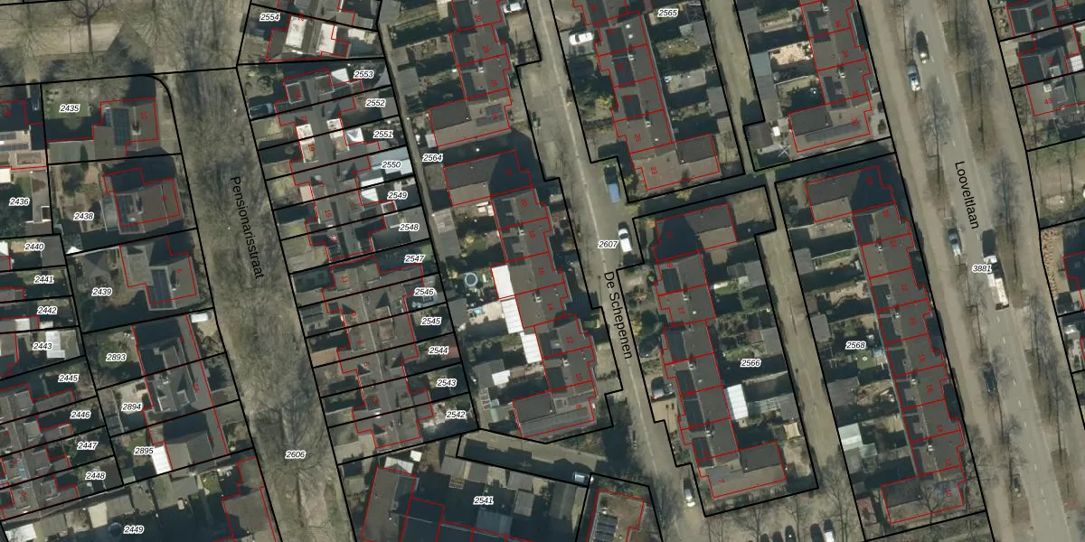 Het perceel waarop De Schepenen 16 staat heeft een oppervlakte van 2314 m². Dit is een zeer groot perceel. De perceeloppervlakte wordt geregistreerd door het Kadaster. Gedetailleerde informatie over de maten van dit perceel kunt u vinden in het rapport Kadastrale kaart met maatvoering van De Schepenen 16.