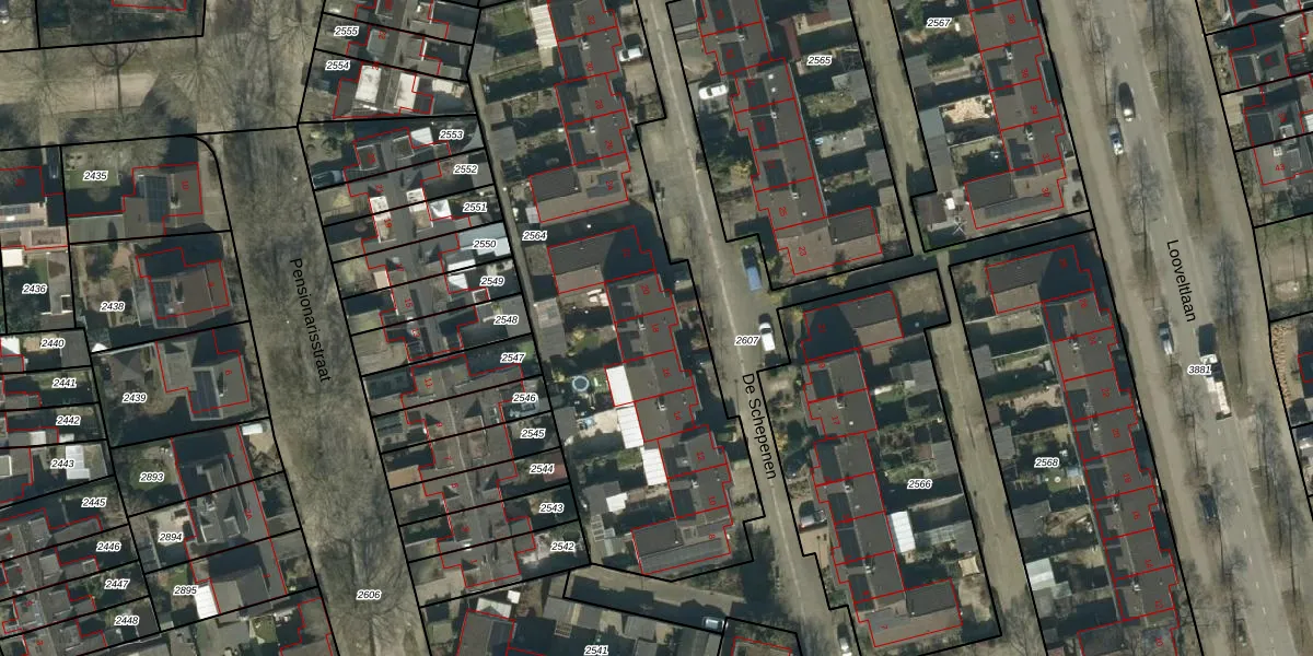 Het perceel waarop De Schepenen 18 staat heeft een oppervlakte van 2314 m². Dit is een zeer groot perceel. De perceeloppervlakte wordt geregistreerd door het Kadaster. Gedetailleerde informatie over de maten van dit perceel kunt u vinden in het rapport Kadastrale kaart met maatvoering van De Schepenen 18.