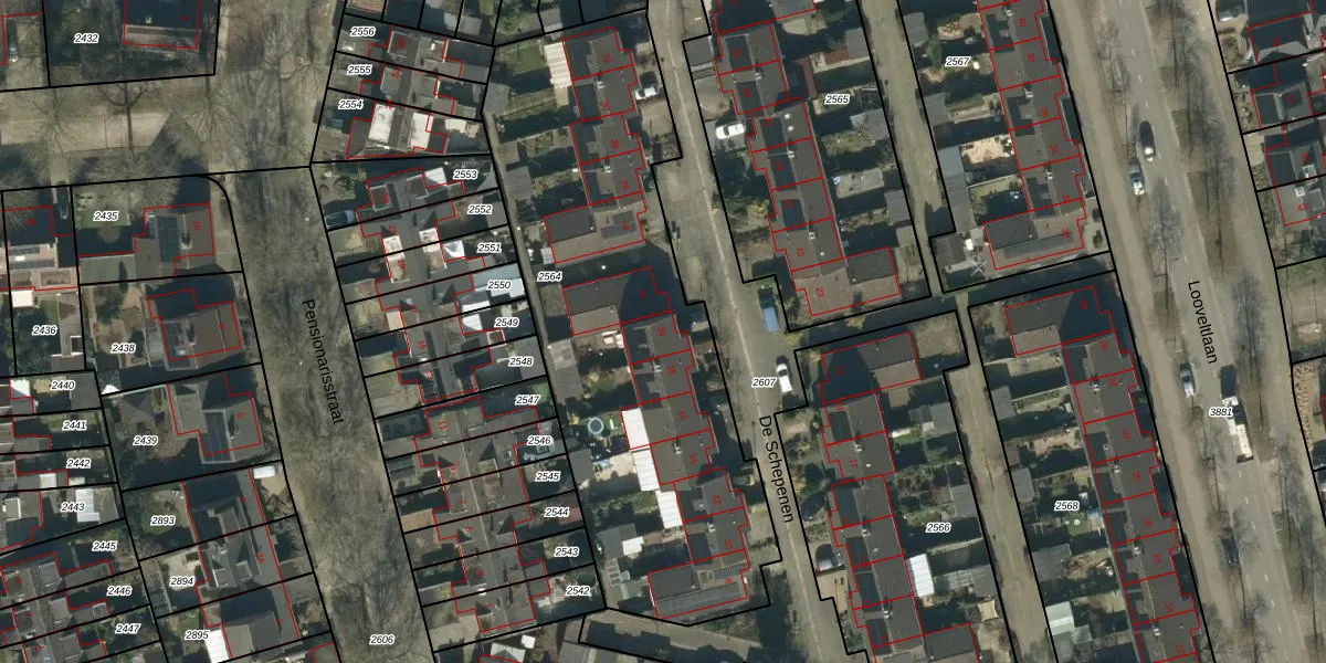 Het perceel waarop De Schepenen 20 staat heeft een oppervlakte van 2314 m². Dit is een zeer groot perceel. De perceeloppervlakte wordt geregistreerd door het Kadaster. Gedetailleerde informatie over de maten van dit perceel kunt u vinden in het rapport Kadastrale kaart met maatvoering van De Schepenen 20.
