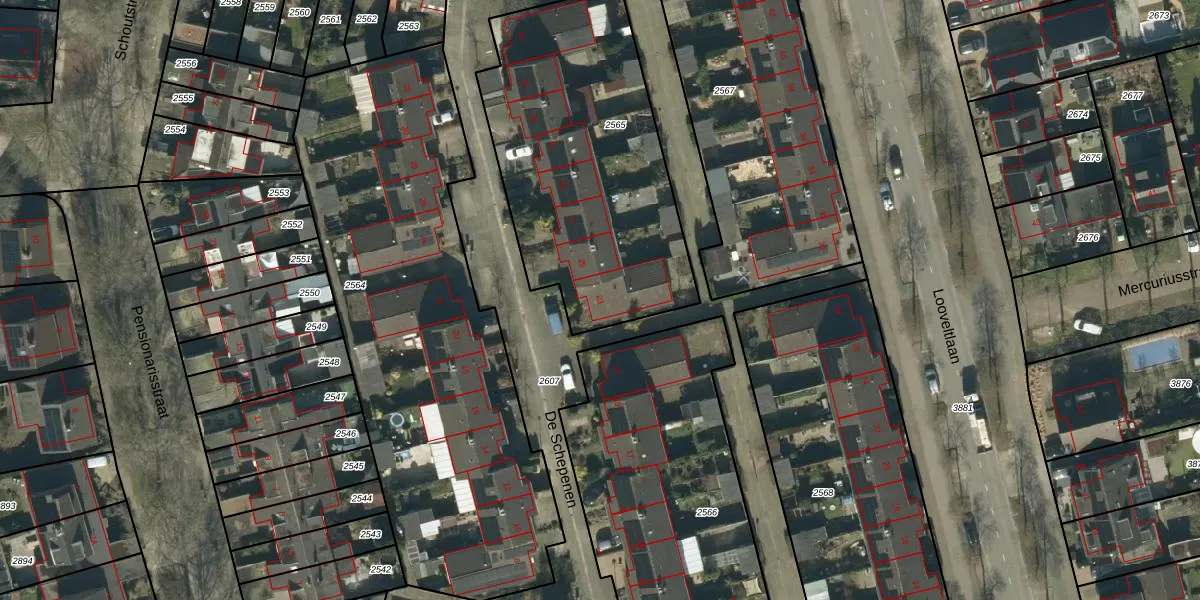 Het perceel waarop De Schepenen 23 staat heeft een oppervlakte van 1392 m². Dit is een zeer groot perceel. De perceeloppervlakte wordt geregistreerd door het Kadaster. Gedetailleerde informatie over de maten van dit perceel kunt u vinden in het rapport Kadastrale kaart met maatvoering van De Schepenen 23.
