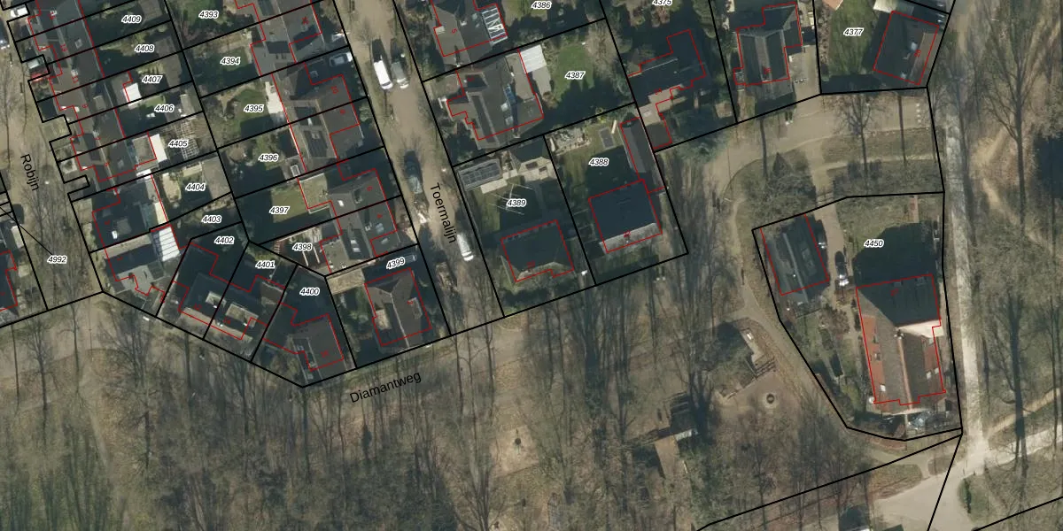 Gebruik de zoekbalk of klik op een perceel voor informatie over de adressen binnen dit perceel.