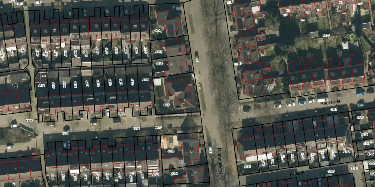 Het perceel waarop Diamantweg 44 staat heeft een oppervlakte van 468 m². Dit is een groot perceel. De perceeloppervlakte wordt geregistreerd door het Kadaster. Gedetailleerde informatie over de maten van dit perceel kunt u vinden in het rapport Kadastrale kaart met maatvoering van Diamantweg 44.