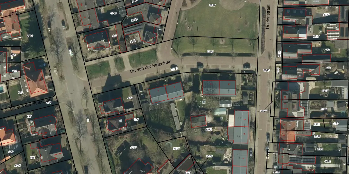 Dr. van der Steenlaan 9 is gelegen op kadastraal perceel OSS00E5873. Deze kadastrale aanduiding is uniek en wordt gebruikt door het Kadaster om eigendomsrechten en andere zakelijke rechten vast te leggen. Het perceel maakt onderdeel uit van de kadastrale gemeente Oss.