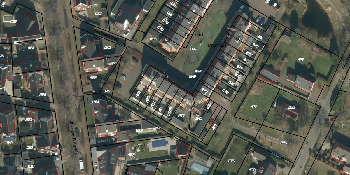 Drenkkuil 7 is gelegen op kadastraal perceel OSS00H1760. Deze kadastrale aanduiding is uniek en wordt gebruikt door het Kadaster om eigendomsrechten en andere zakelijke rechten vast te leggen. Het perceel maakt onderdeel uit van de kadastrale gemeente Oss.