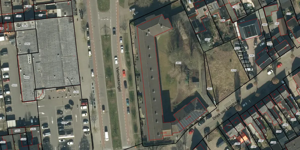 Het perceel waarop Driek van Erpstraat 103 staat heeft een oppervlakte van 3833 m². Dit is een zeer groot perceel. De perceeloppervlakte wordt geregistreerd door het Kadaster. Gedetailleerde informatie over de maten van dit perceel kunt u vinden in het rapport Kadastrale kaart met maatvoering van Driek van Erpstraat 103.