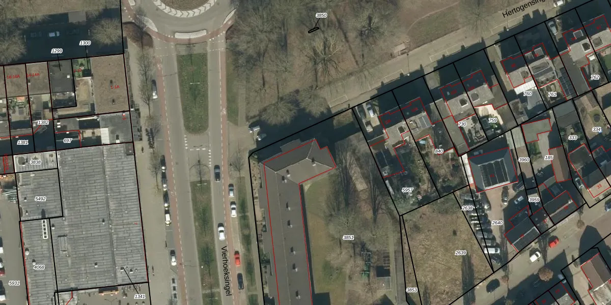 Het perceel waarop Driek van Erpstraat 141 staat heeft een oppervlakte van 3833 m². Dit is een zeer groot perceel. De perceeloppervlakte wordt geregistreerd door het Kadaster. Gedetailleerde informatie over de maten van dit perceel kunt u vinden in het rapport Kadastrale kaart met maatvoering van Driek van Erpstraat 141.
