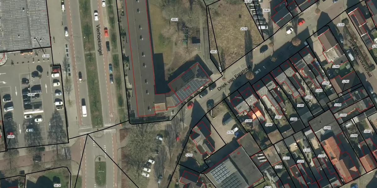 Het perceel waarop Driek van Erpstraat 45-A staat heeft een oppervlakte van 3833 m². Dit is een zeer groot perceel. De perceeloppervlakte wordt geregistreerd door het Kadaster. Gedetailleerde informatie over de maten van dit perceel kunt u vinden in het rapport Kadastrale kaart met maatvoering van Driek van Erpstraat 45-A.