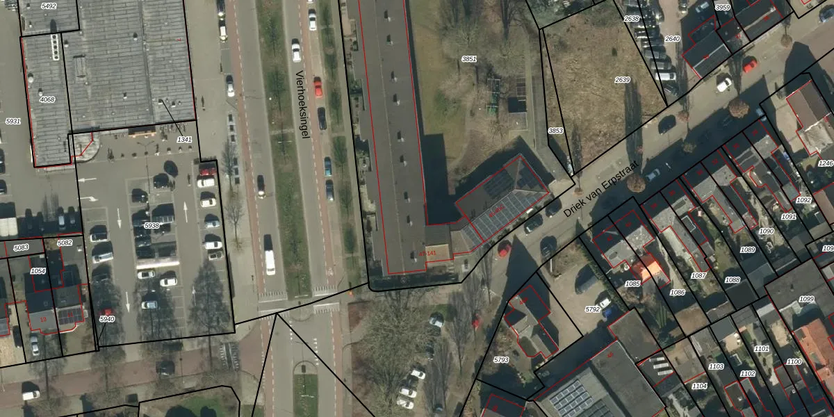 Het perceel waarop Driek van Erpstraat 47 staat heeft een oppervlakte van 3833 m². Dit is een zeer groot perceel. De perceeloppervlakte wordt geregistreerd door het Kadaster. Gedetailleerde informatie over de maten van dit perceel kunt u vinden in het rapport Kadastrale kaart met maatvoering van Driek van Erpstraat 47.