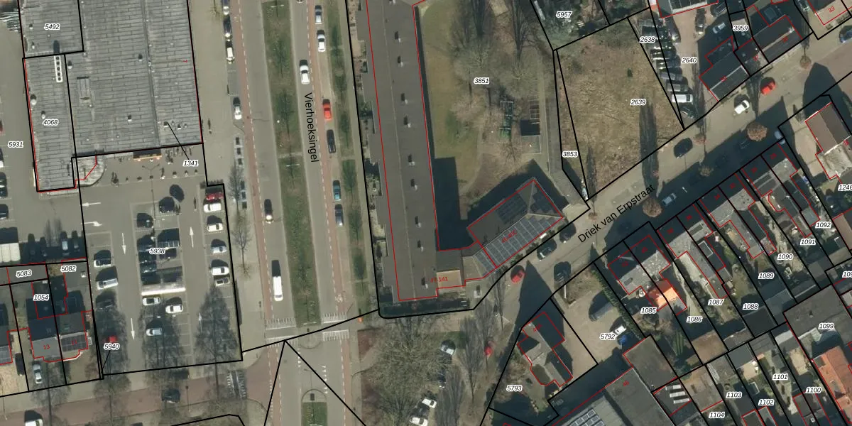 Het perceel waarop Driek van Erpstraat 49 staat heeft een oppervlakte van 3833 m². Dit is een zeer groot perceel. De perceeloppervlakte wordt geregistreerd door het Kadaster. Gedetailleerde informatie over de maten van dit perceel kunt u vinden in het rapport Kadastrale kaart met maatvoering van Driek van Erpstraat 49.