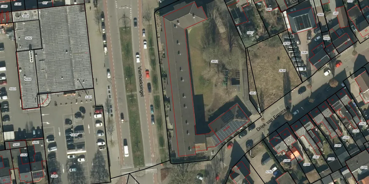 Het perceel waarop Driek van Erpstraat 77 staat heeft een oppervlakte van 3833 m². Dit is een zeer groot perceel. De perceeloppervlakte wordt geregistreerd door het Kadaster. Gedetailleerde informatie over de maten van dit perceel kunt u vinden in het rapport Kadastrale kaart met maatvoering van Driek van Erpstraat 77.